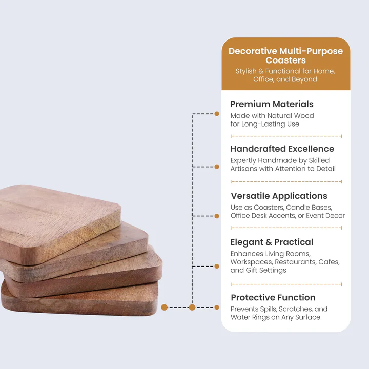 Designed for long-lasting use, these wooden coasters are lightweight yet sturdy and easy to maintain, ensuring reliable performance with a premium look.